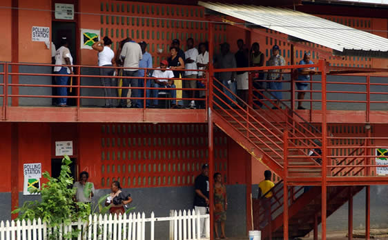 Voters at the Granville All Age School, in St. James, showing a great deal of discipline and good order as they prepare to cast their ballot.