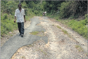 Residents of South East St. Mary have identified poor roads, like this one in Enfield, as one of the reasons why they will not support the PNP candidate in next week's elections.
