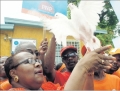 Bruce, party supporters make merryNomination Day activities in Kingston Western took on a carnival-like flavour yesterday with supporters of both major political parties dancing together in the streets more