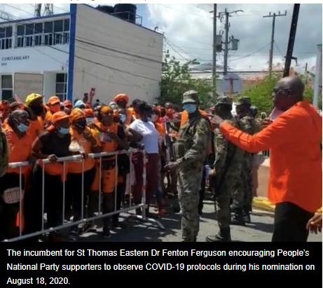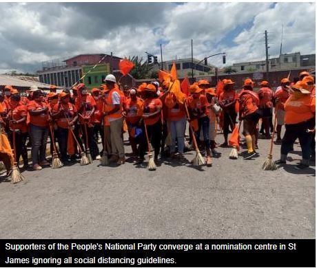 The St Thomas police say they had a hard time during nomination day proceedings as party supporters failed to adhere to COVID-19 physical distancing rules.