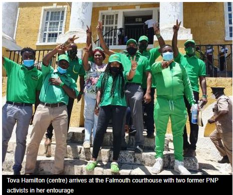 Sending a strong message to her opponent, the Jamaica Labour Party's (JLP) Tova Hamilton, arrived at the nomination centre at the Trelawny Parish Court, Falmouth with two known People's National Party (PNP) activists as part of her...