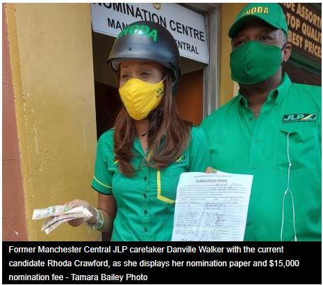 Danville Walker is back in Manchester Central on a Nomination Day. But this time, to support Rhoda Crawford, the Jamaica Labour Party (JLP) candidate for the September 3 general election. In 2011, Walker, was also in the constituency on Nomination...
