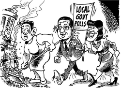 Outdoor agents for the People's National Party relax during yesterday's slow local government election-day activities at the ...